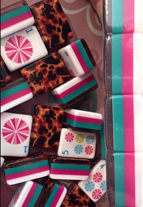 High-quality Mahjong tiles with four layer acrylic shipped to you in acrylic box with complementary cocktail napkins